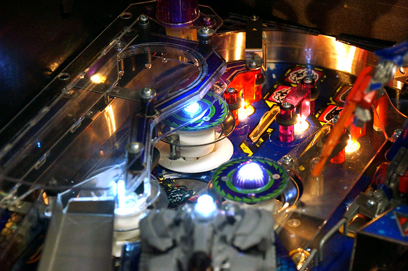 For an additional fee, we can replace every single incandescent filament bulb in the game with beautifully bright LED bulbs to make your pinball machine shine, and truly stand out in your games room. An LED upgrade won’t just make your machine look dazzling, and make viewing your playfield easier but also improve the way it operates too, generating less heat, consuming less electricity and ultimately lasting for longer.